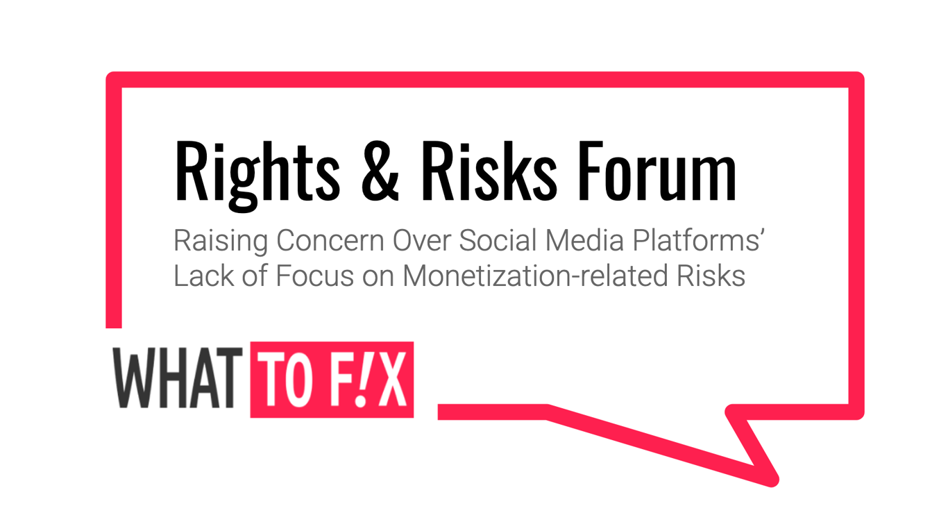 rights & risk forum, DSA risk assessments, social media, WHAT TO FIX, monetization-related risks