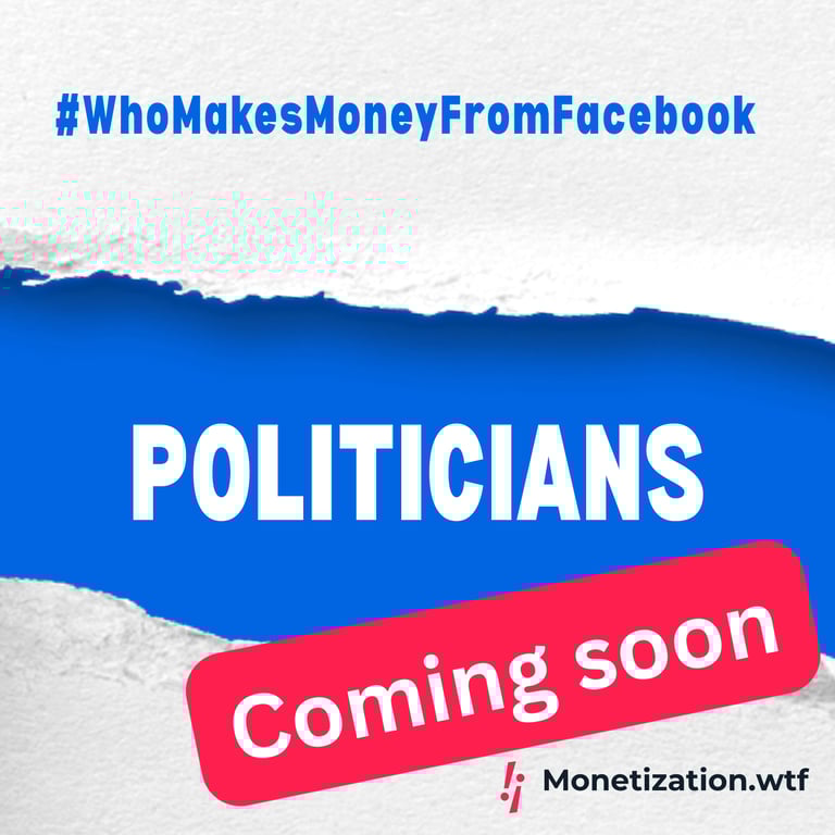 WHAT TO FIX’s Meta Monetization Archive reveals how numerous pages affiliated with politicians and political candidates have been —and in some cases continue to be— accessing Facebook's monetization services.